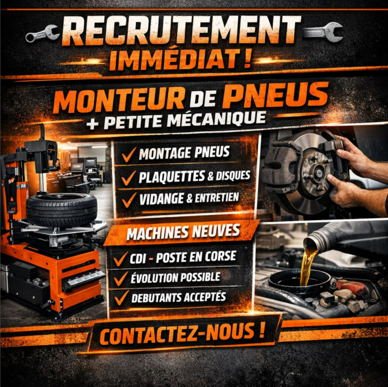 Monteur de pneus Petite mécanique : • Plaquettes • Disques • Vidanges